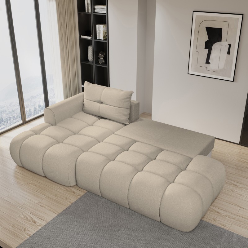 Masseno Narożnik FLUMA z funkcją spania i pojemnikiem na pościel Narozniki L, Rozkładana sofa - Beżowy, SORO 21