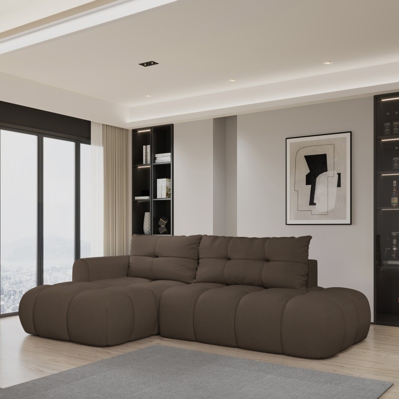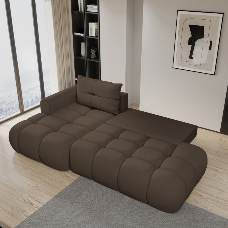 Masseno Narożnik FLUMA z funkcją spania i pojemnikiem na pościel Narozniki L, Rozkładana sofa - Brązowy, SORO 28