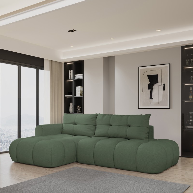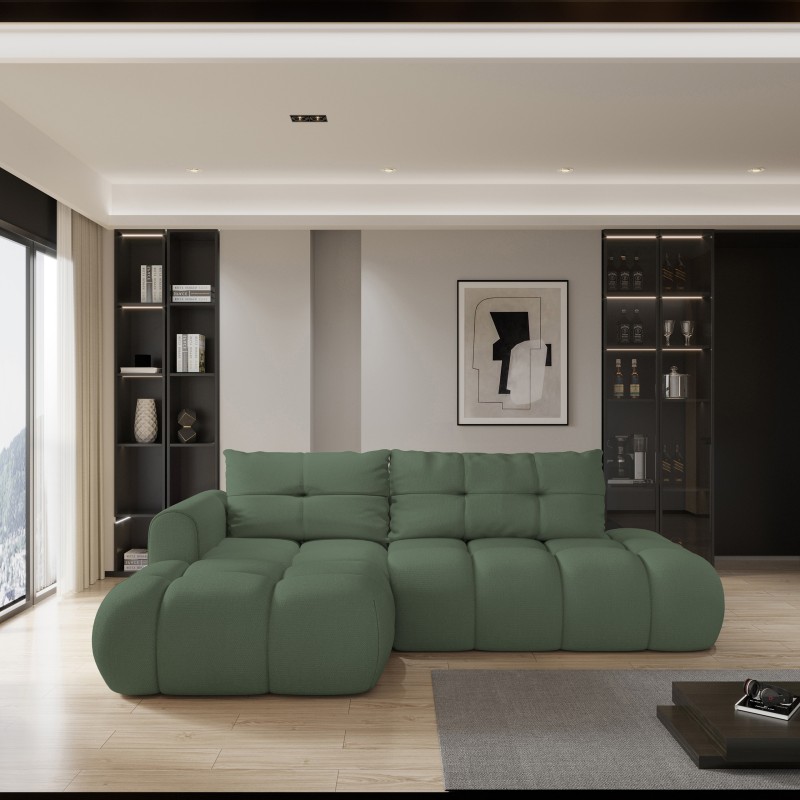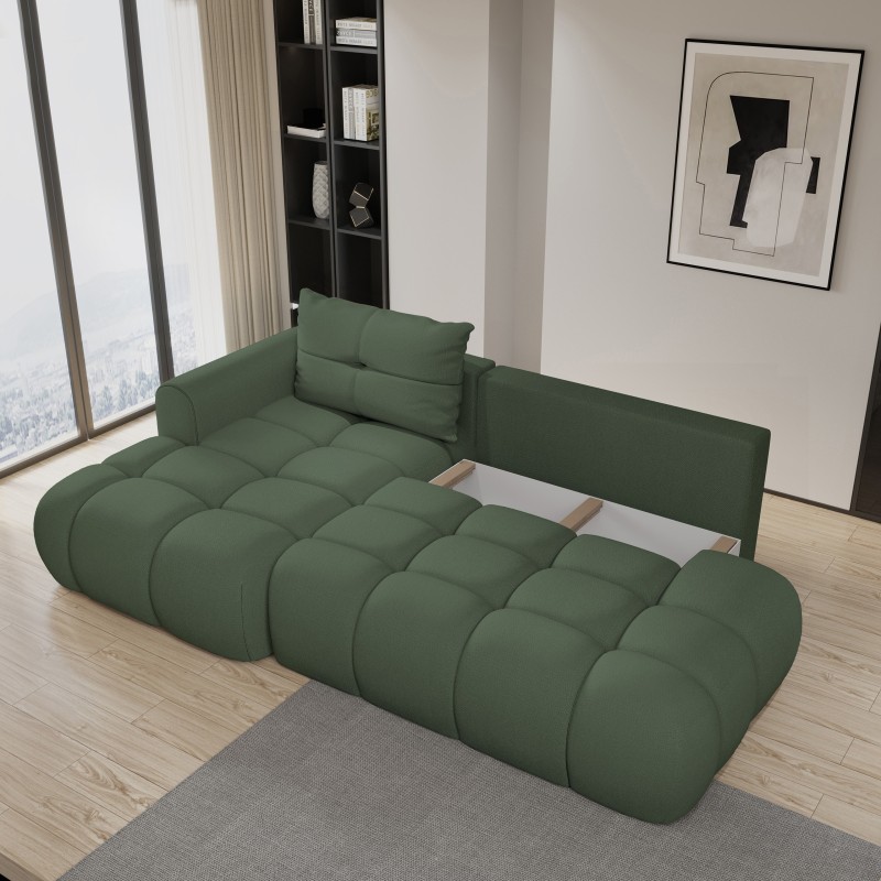 Masseno Narożnik FLUMA z funkcją spania i pojemnikiem na pościel Narozniki L, Rozkładana sofa - Zielony, SORO 72