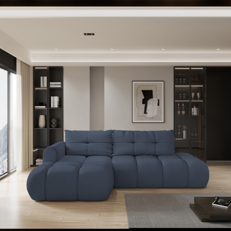 Masseno Narożnik FLUMA z funkcją spania i pojemnikiem na pościel Narozniki L, Rozkładana sofa - Niebieski, SORO 76