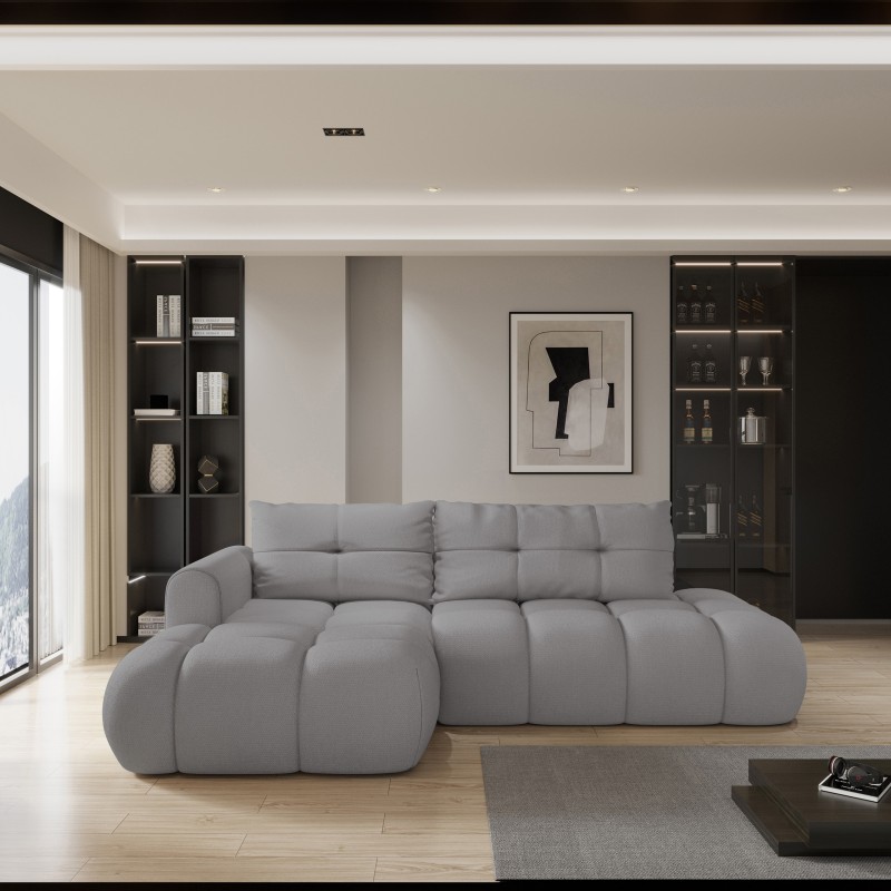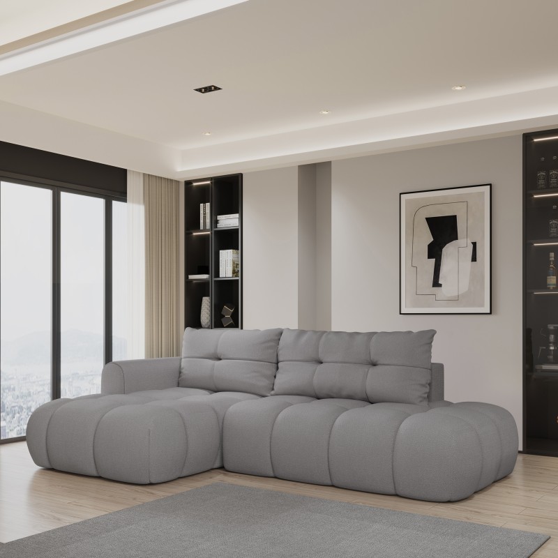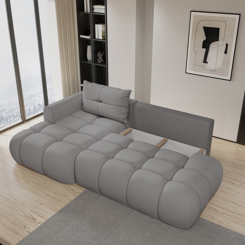Masseno Narożnik FLUMA z funkcją spania i pojemnikiem na pościel Narozniki L, Rozkładana sofa - Szary, SORO 90