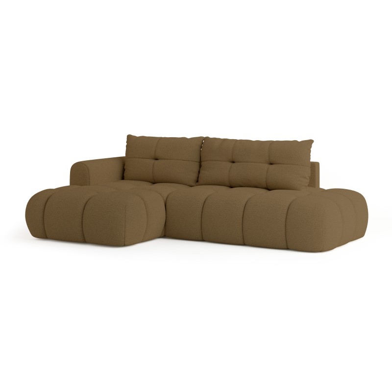 Masseno Narożnik FLUMA z funkcją spania i pojemnikiem na pościel Narozniki L, Rozkładana sofa - Miodowy, QUELLE 17