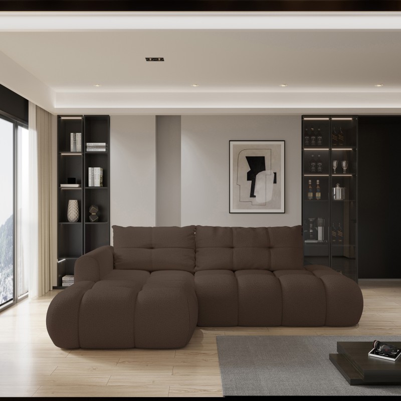Narożnik FLUMA – miękkość boucle w nowoczesnym wydaniu