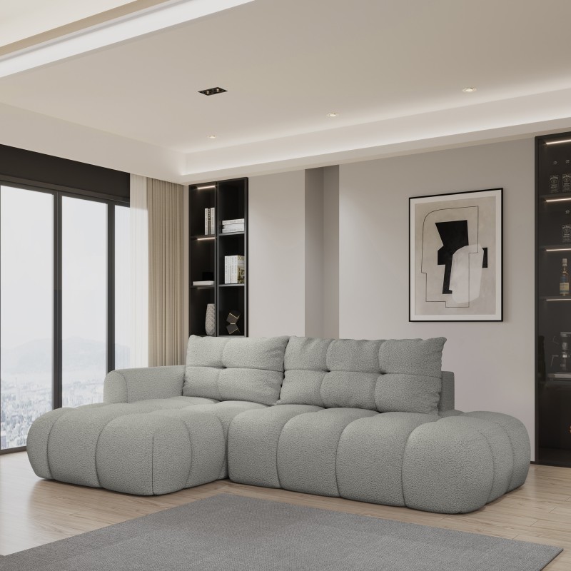 Narożnik FLUMA – miękkość boucle w nowoczesnym wydaniu