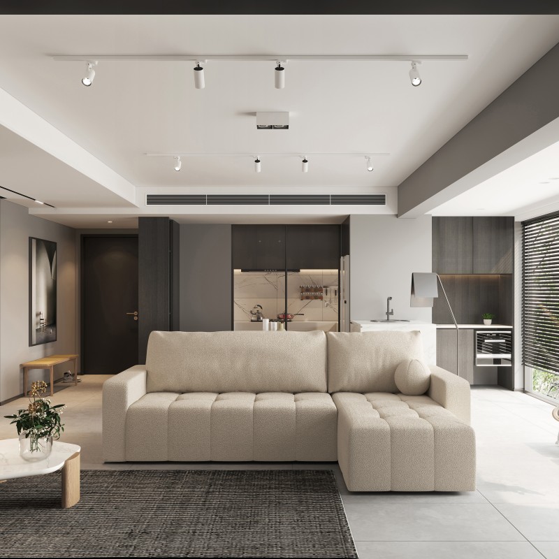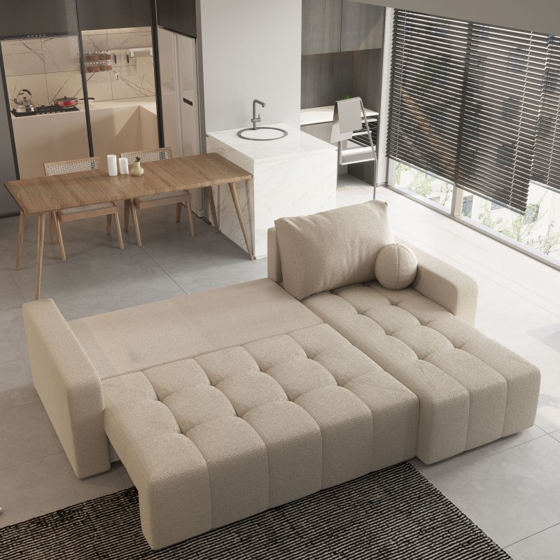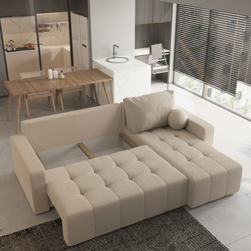 Masseno Narożnik VOLIRA z funkcją spania i pojemnikiem na pościel Narozniki L, Rozkładana sofa - Beżowy, QUELLE 05