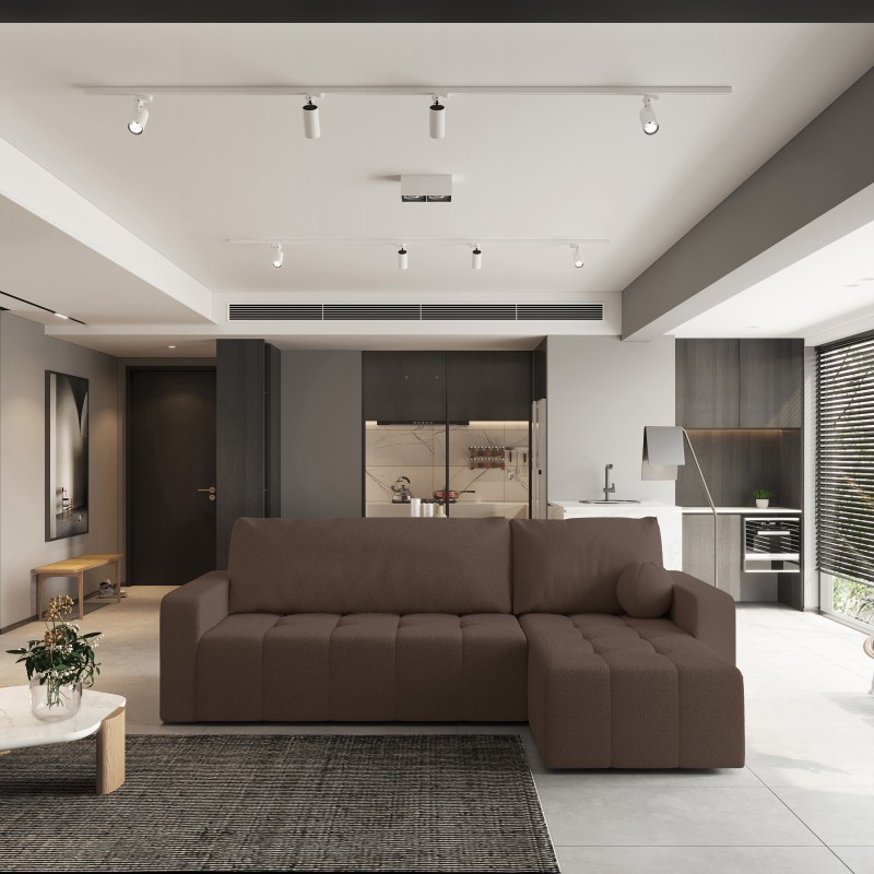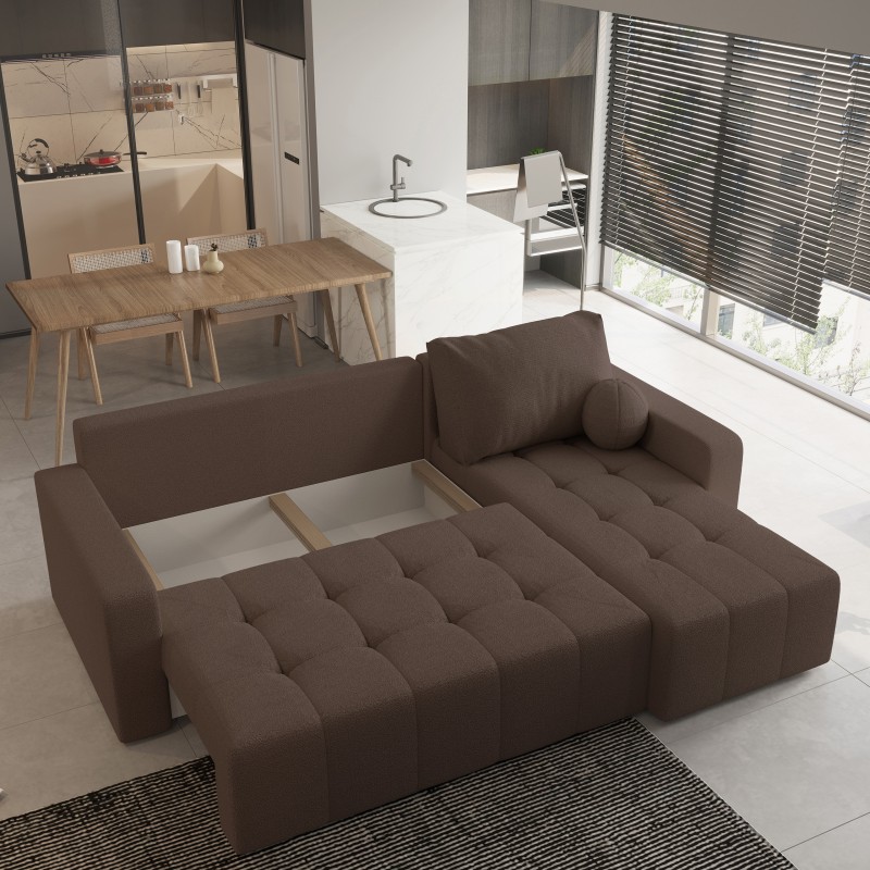 Masseno Narożnik VOLIRA z funkcją spania i pojemnikiem na pościel Narozniki L, Rozkładana sofa - Brązowy, QUELLE 25
