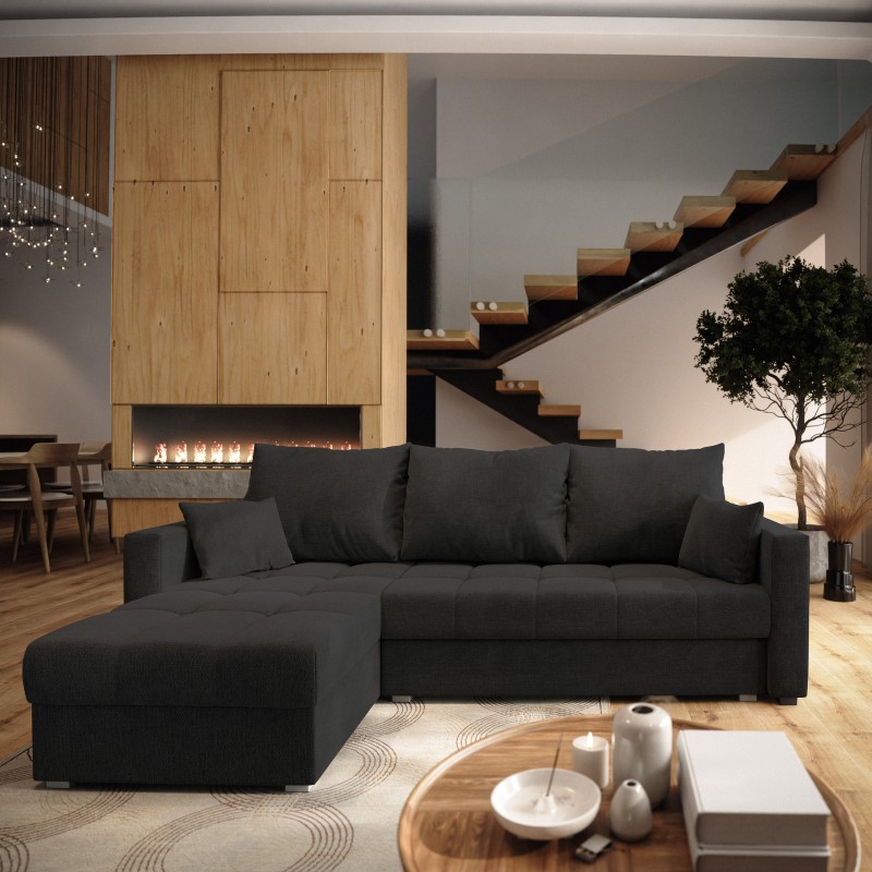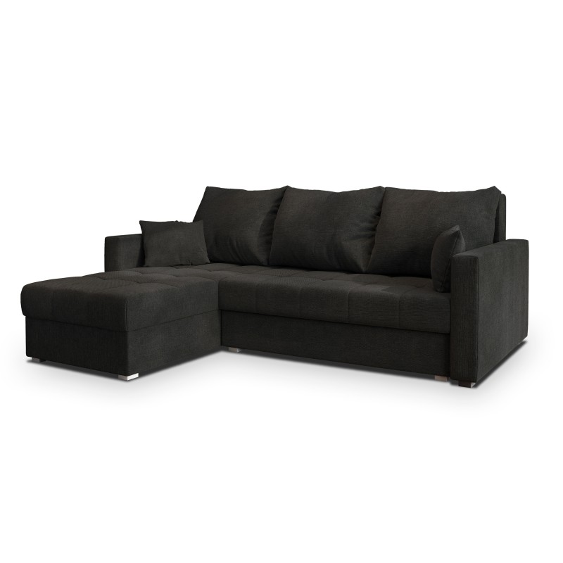 Masseno Narożnik NIDA z funkcją spania i pojemnikiem na pościel Narozniki L, Rozkładana sofa - Czarny, INARI 100