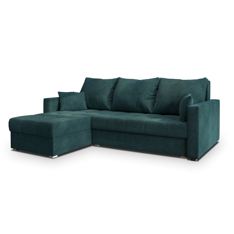 Masseno Narożnik NIDA z funkcją spania i pojemnikiem na pościel Narozniki L, Rozkładana sofa - Lazurowy, INARI 87