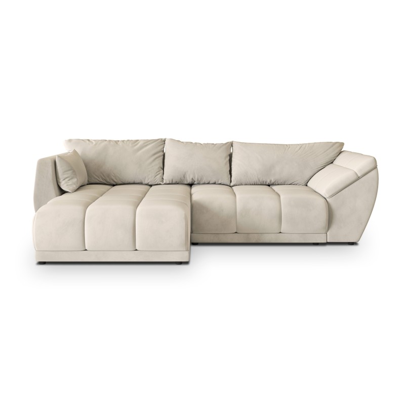 Masseno Narożnik ORENTI z funkcją spania i pojemnikiem na pościel Narozniki L, Rozkładana sofa - Kremowy, MATT VELVET 06