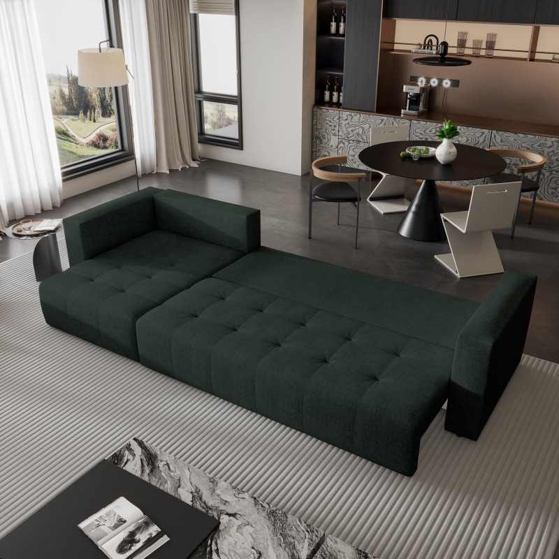 Masseno Narożnik OLVERA z funkcją spania i pojemnikiem na pościel Narozniki L, Rozkładana sofa - Zielony, NEVE 37