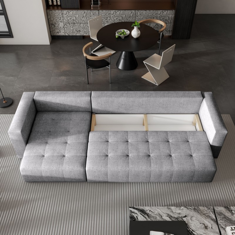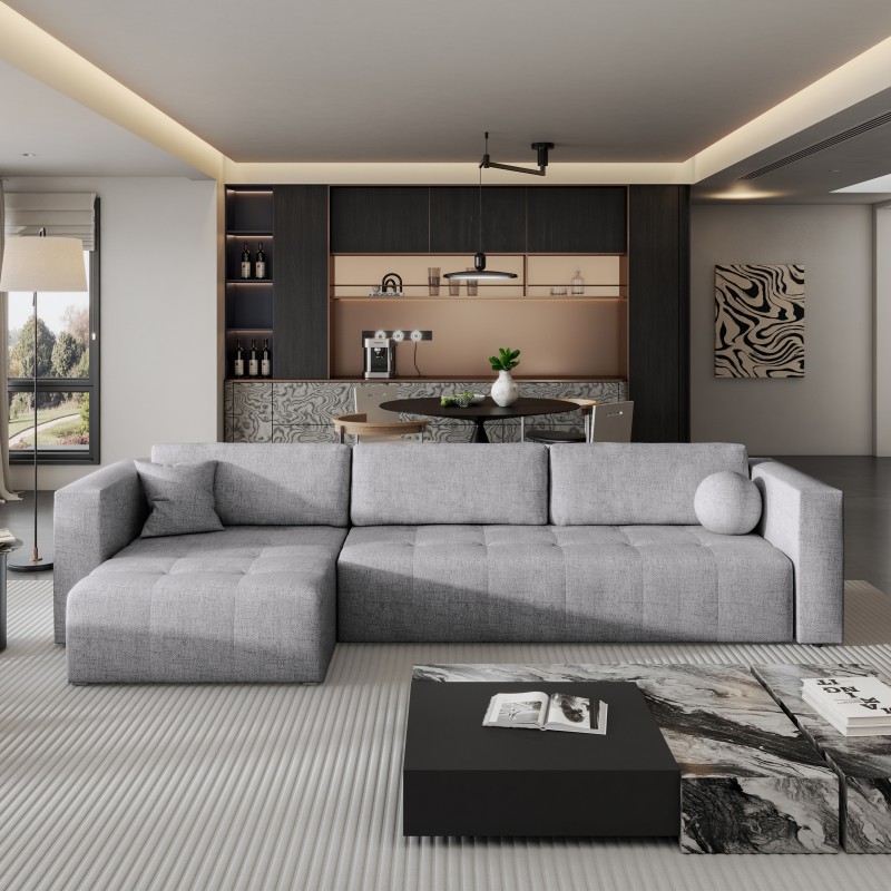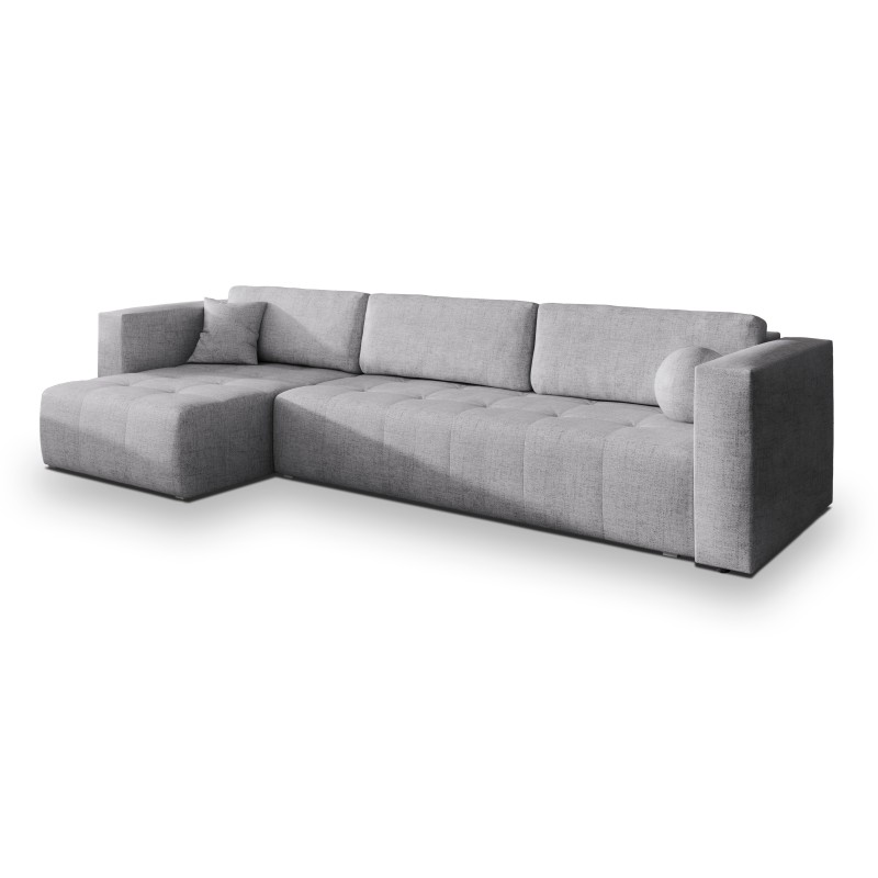 Masseno Narożnik OLVERA z funkcją spania i pojemnikiem na pościel Narozniki L, Rozkładana sofa - Jasnoszary, NEVE 83