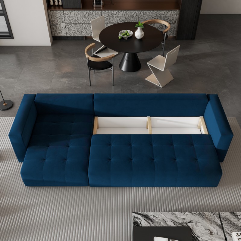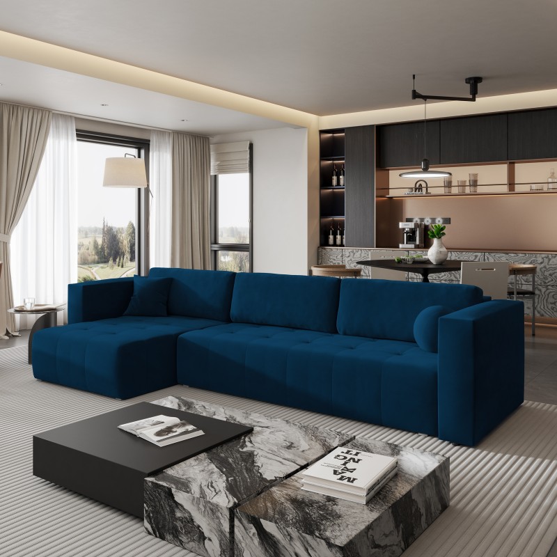 Masseno Narożnik OLVERA z funkcją spania i pojemnikiem na pościel Narozniki L, Rozkładana sofa - Niebieski, KRONOS 09