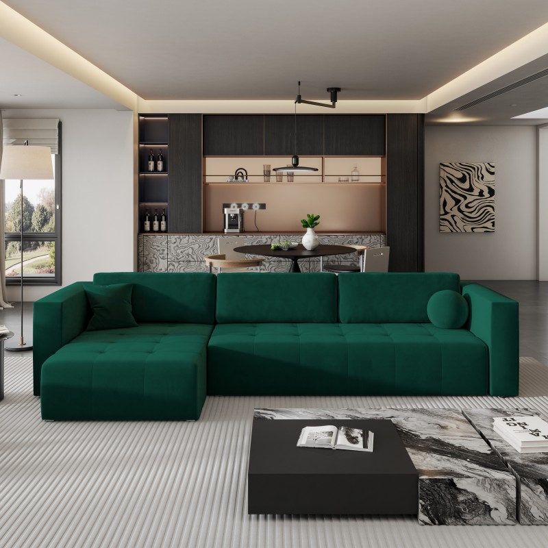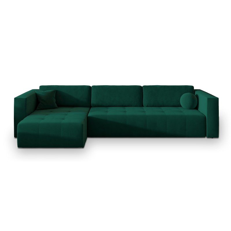 Masseno Narożnik OLVERA z funkcją spania i pojemnikiem na pościel Narozniki L, Rozkładana sofa - Butelkowa zieleń, KRONOS 19