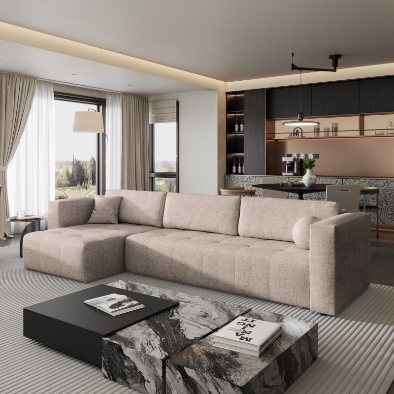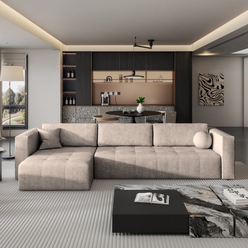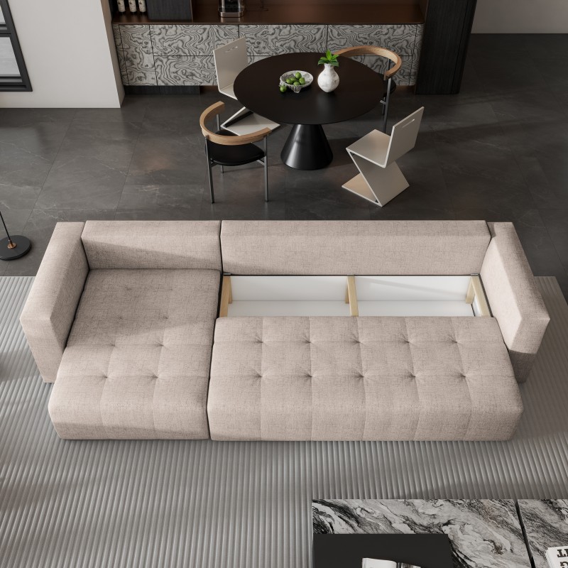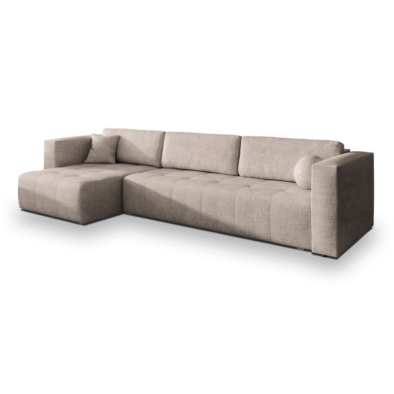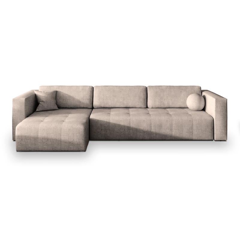 Masseno Narożnik OLVERA z funkcją spania i pojemnikiem na pościel Narozniki L, Rozkładana sofa - Beżowy, NEVE 04