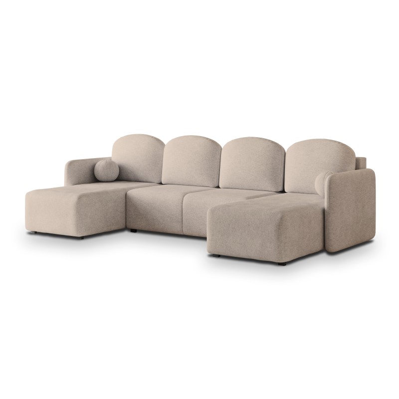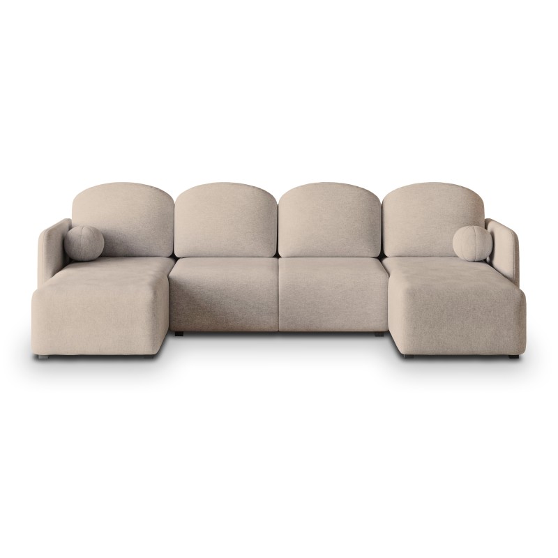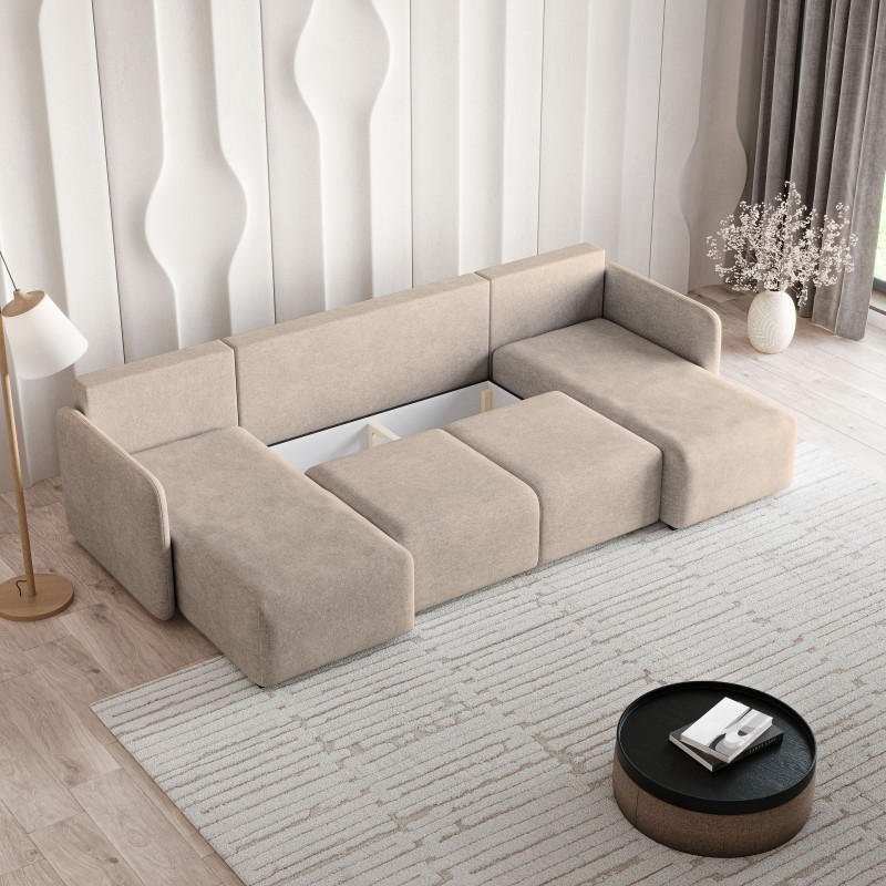 Masseno Narożnik NUBERO z funkcją spania i pojemnikiem na pościel Narozniki U, Rozkładana sofa - Beżowy, NEVE 04