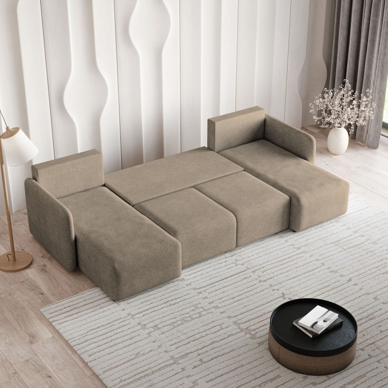Masseno Narożnik NUBERO z funkcją spania i pojemnikiem na pościel Narozniki U, Rozkładana sofa - Brązowy, NEVE 16