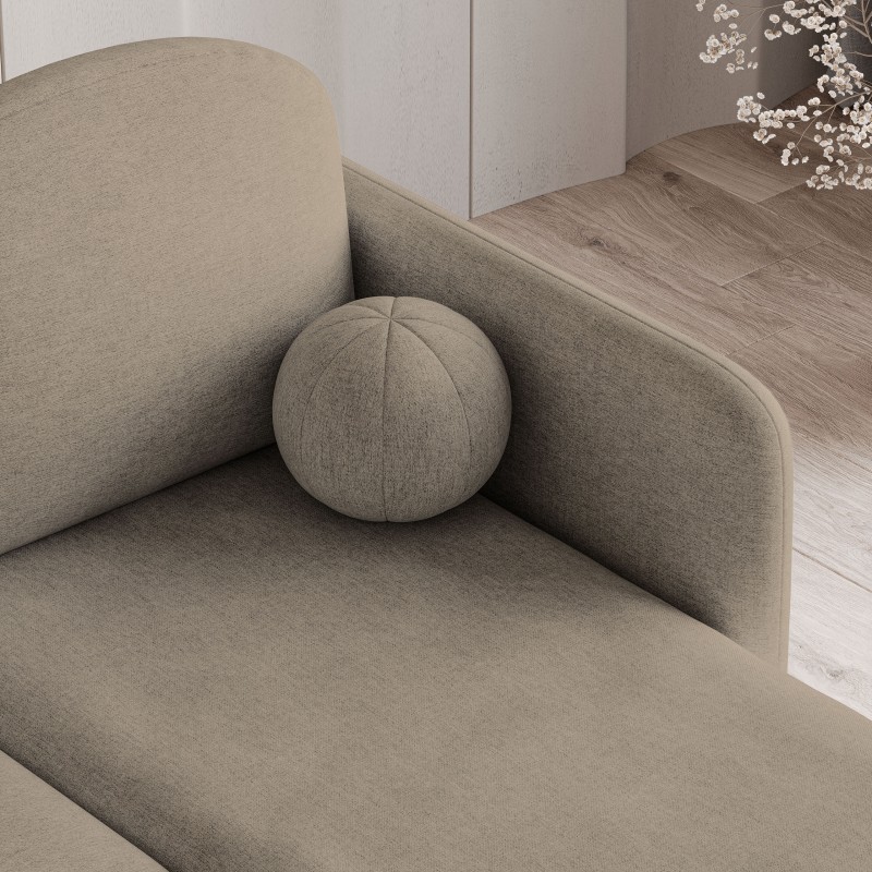 Na co dzień pełni rolę eleganckiego, dużego siedziska, a kiedy potrzeba – zaskakuje swoją praktycznością. Dzięki łatwemu w obsłudze mechanizmowi rozkładania w kilka chwil zamienisz go w wygodne łóżko – idealne do nocowania gości lub krótkiej drzemki. Wewnątrz ukryty jest także przestronny pojemnik na pościel, który pomieści koce, poduszki czy sezonowe tekstylia – wszystko to, co chcesz mieć pod ręką, ale poza zasięgiem wzroku. NUBERO został obity tkaniną NEVE – miękkim, przyjemnym w dotyku materiałem o subtelnej strukturze i delikatnym, naturalnym wykończeniu. To tkanina, która dodaje wnętrzu przytulności, a przy tym świetnie radzi sobie w codziennym użytkowaniu. Matowa powierzchnia, odporność na ścieranie i wysoka jakość splotu sprawiają, że mebel długo zachowa świeży, estetyczny wygląd. W zestawie otrzymujesz również komplet ozdobnych poduszek – w tym miękkie oparcia i dodatki dekoracyjne, które budują domową atmosferę i dopełniają jego formę.