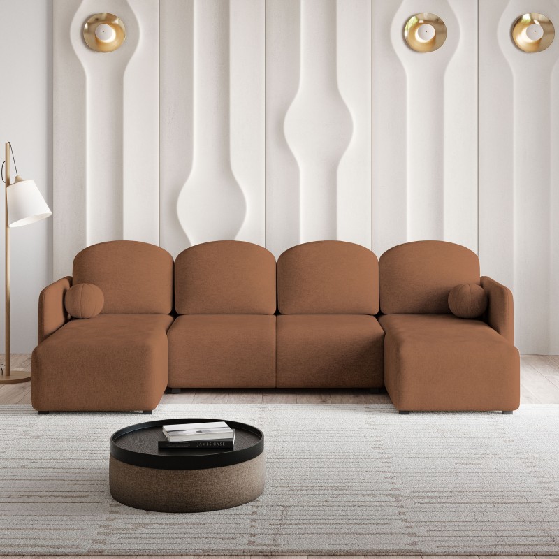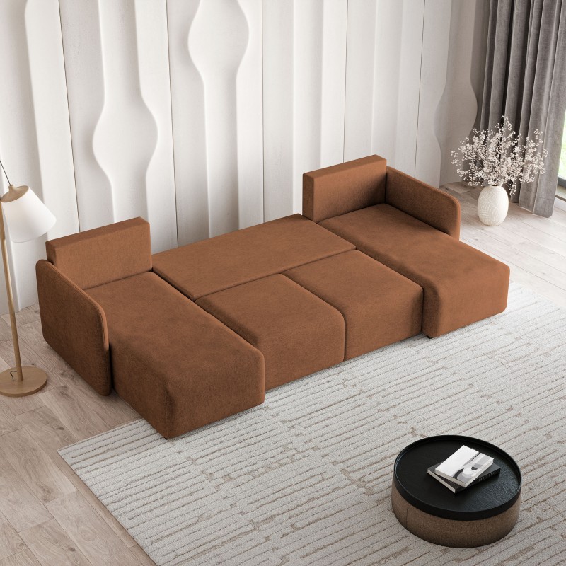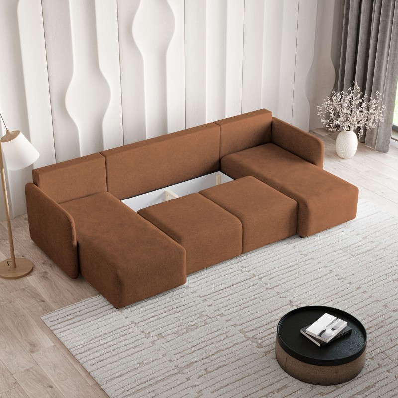 Masseno Narożnik NUBERO z funkcją spania i pojemnikiem na pościel Narozniki U, Rozkładana sofa - Miedziany, NEVE 52