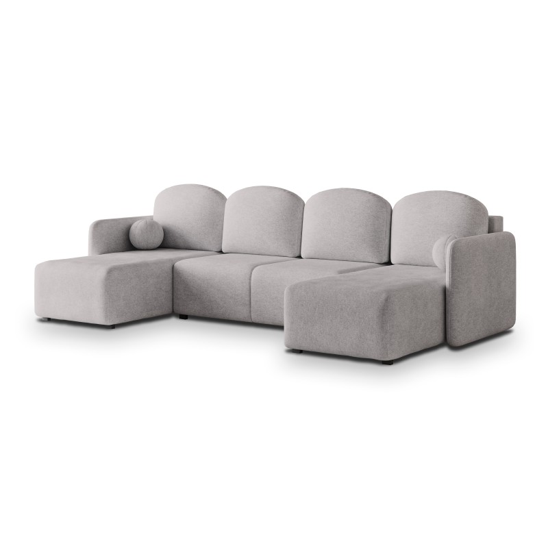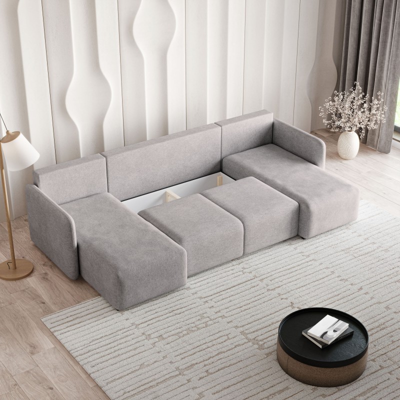 Masseno Narożnik NUBERO z funkcją spania i pojemnikiem na pościel Narozniki U, Rozkładana sofa - Jasnoszary, NEVE 83