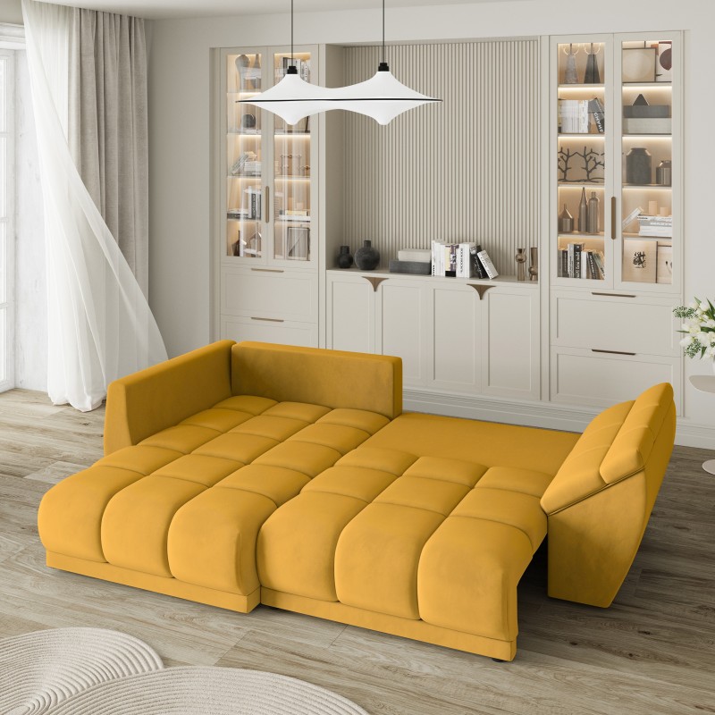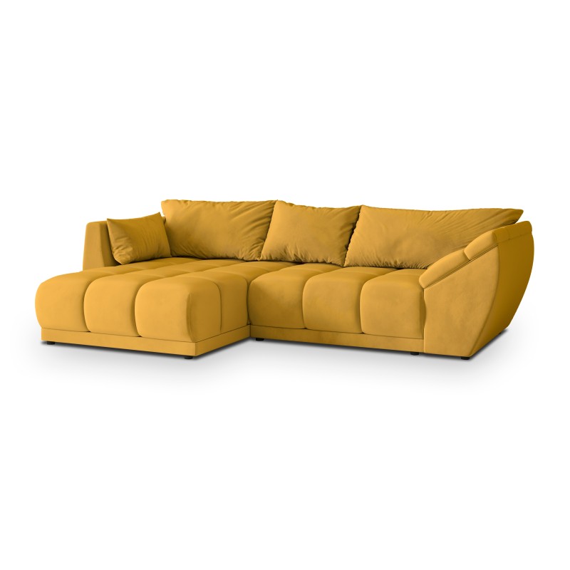 Masseno Narożnik ORENTI z funkcją spania i pojemnikiem na pościel Narozniki L, Rozkładana sofa - Żółty, MATT VELVET 48