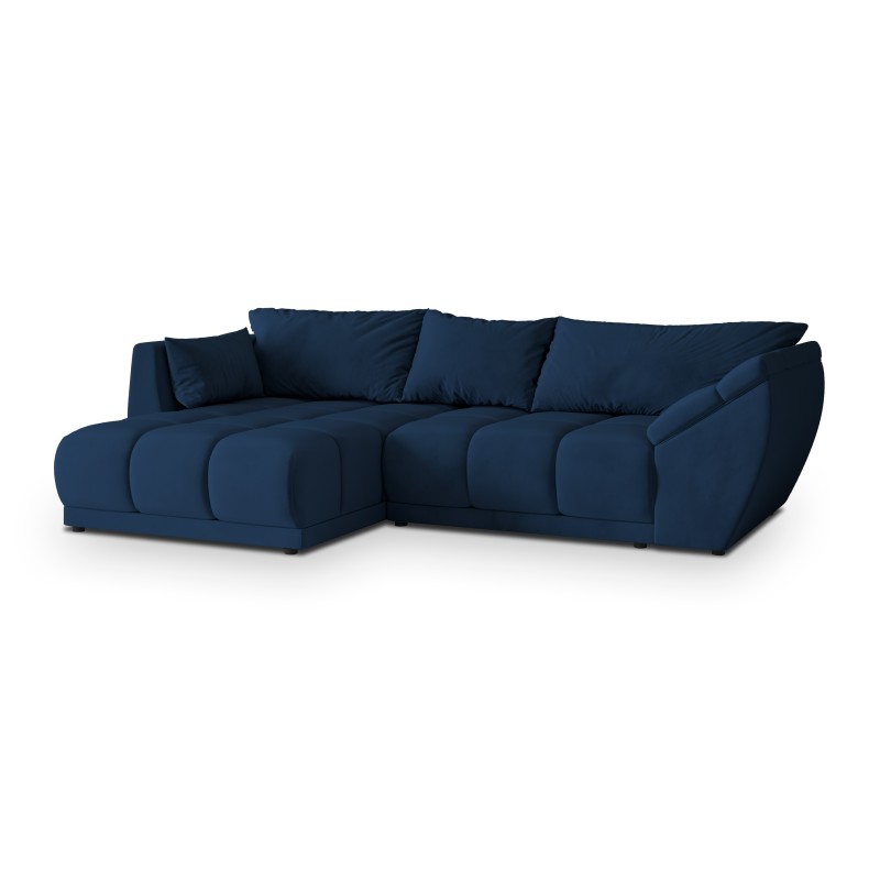 Masseno Narożnik ORENTI z funkcją spania i pojemnikiem na pościel Narozniki L, Rozkładana sofa - Niebieski, MATT VELVET 79