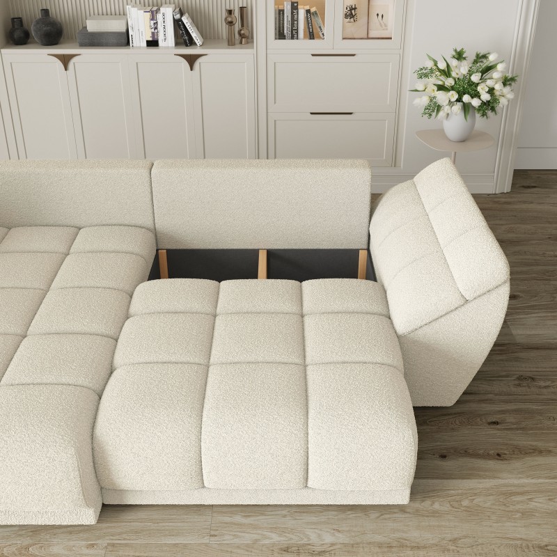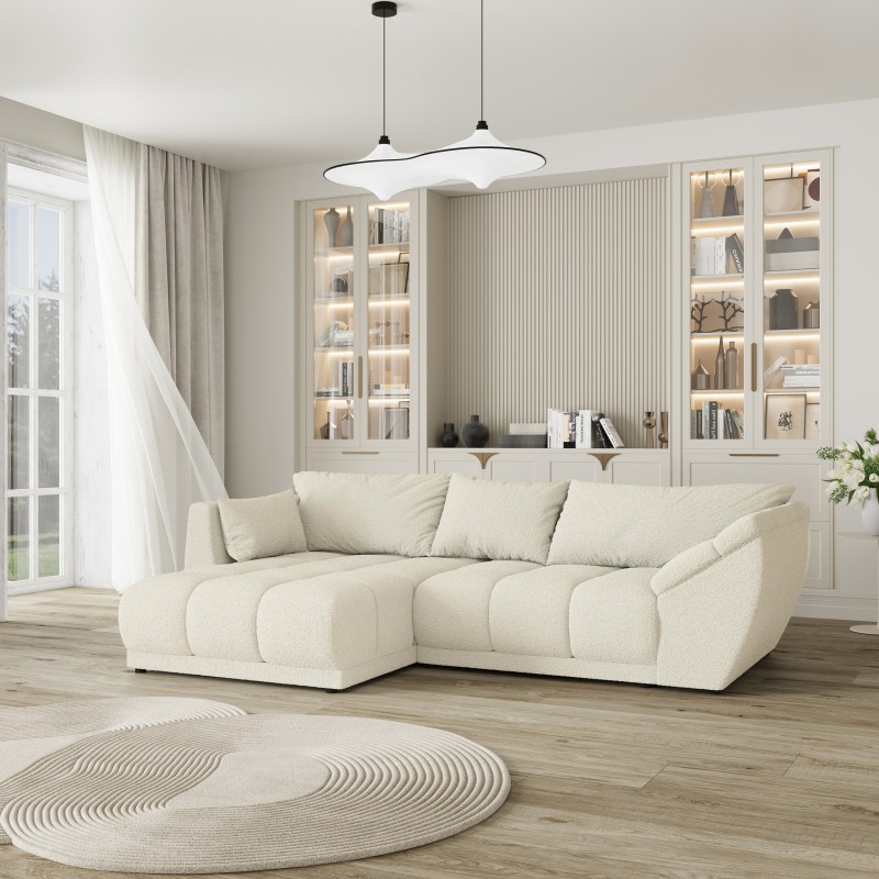 Masseno Narożnik ORENTI z funkcją spania i pojemnikiem na pościel Narozniki L, Rozkładana sofa - Kremowy, QUELLE 02