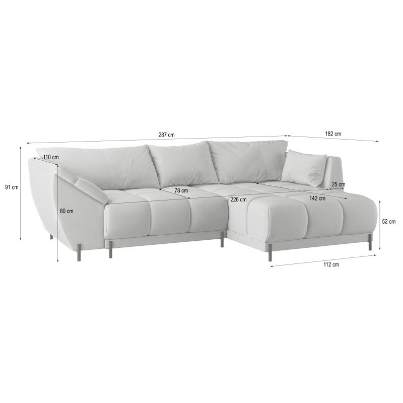 VESTANO nie tylko dobrze wygląda, ale również zaskakuje funkcjonalnością. Wbudowana funkcja spania pozwala w kilka sekund rozłożyć narożnik i stworzyć wygodne miejsce do snu, idealne dla okazjonalnych dla gości. Wewnątrz znajdziesz również duży pojemnik na pościel, który z łatwością pomieści tekstylia, poduszki i koce. Wybór strony? Pełna swoboda – narożnik dostępny jest w wersji lewostronnej i prawostronnej, dzięki czemu łatwo dopasujesz go do każdego wnętrza. W tej odsłonie VESTANO zyskuje zupełnie nowy charakter – wszystko za sprawą tkaniny Matt Velvet. Jej subtelny połysk i gładka, aksamitna struktura dodają meblowi elegancji i przytulności zarazem. Welur pięknie odbija światło, tworząc szlachetne refleksy, a przy tym jest miękki, odporny na ścieranie i łatwy do utrzymania w czystości. Świetnie nadaje się do domu z dziećmi i zwierzętami. To wybór idealny dla tych, którzy oczekują nie tylko stylu, ale i jakości. Kolory Matt Velvet podkreślają luksusowy charakter narożnika.