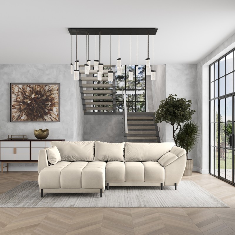 Masseno Narożnik VESTANO z funkcją spania i pojemnikiem na pościel Narozniki L, Rozkładana sofa - Kremowy, MATT VELVET 06