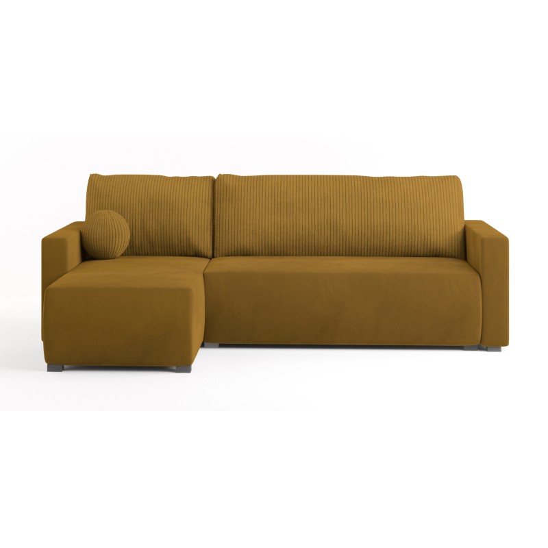 Masseno Narożnik SORGE z funkcją spania i pojemnikiem na pościel Narozniki L, Rozkładana sofa - Żółty, POSO 01 + KRONOS 01