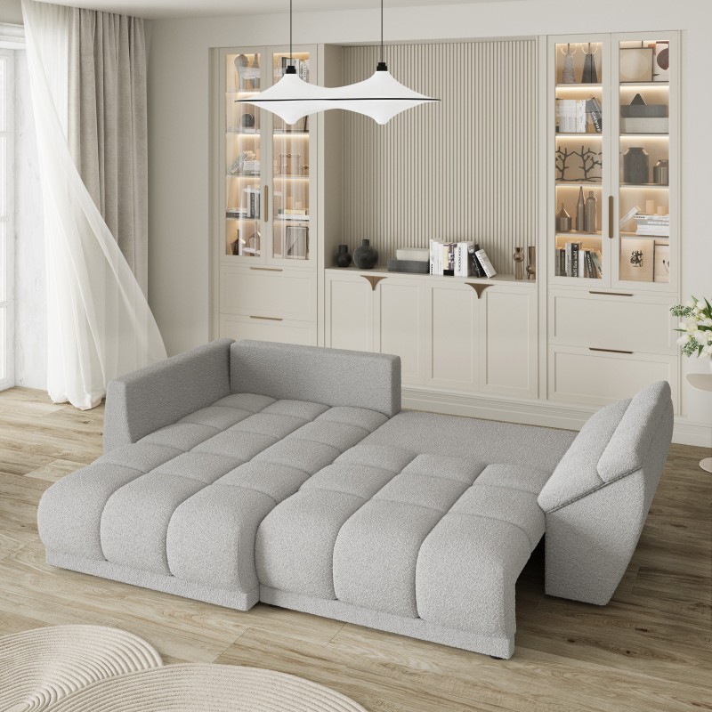 Masseno Narożnik ORENTI z funkcją spania i pojemnikiem na pościel Narozniki L, Rozkładana sofa - Jasnoszary, QUELLE 83