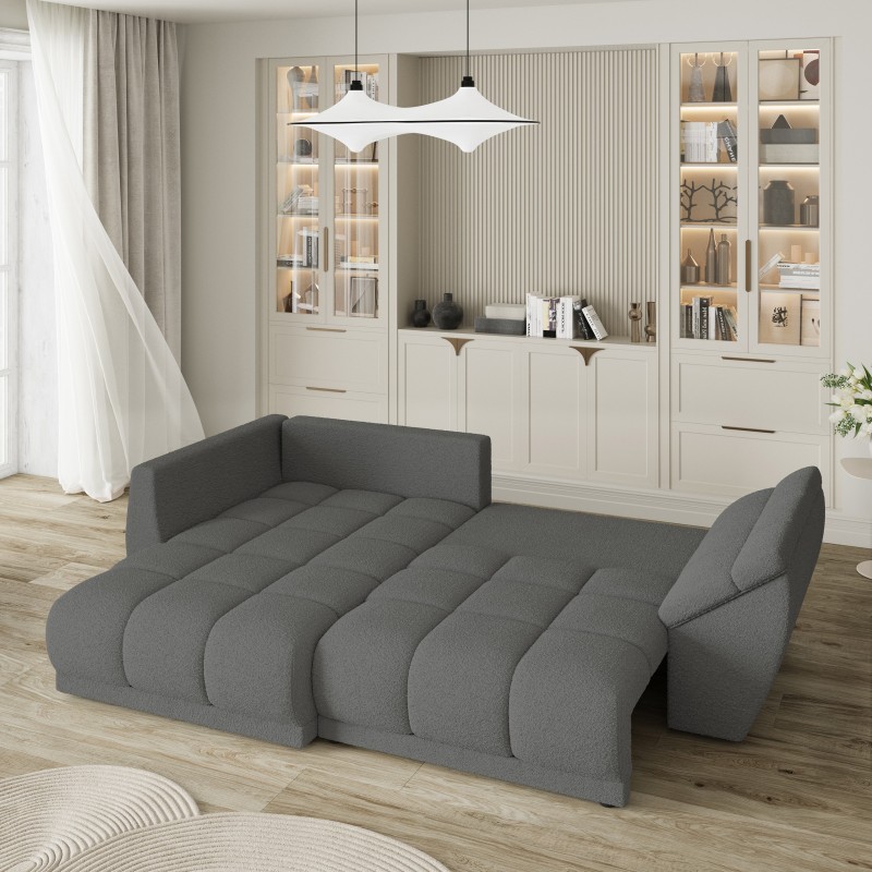 - Narożnik z łatwością rozłożysz, tworząc pełnowymiarową powierzchnię do spania. To doskonałe rozwiązanie, gdy chcesz zapewnić komfortowy nocleg gościom – bez potrzeby dodatkowego łóżka.