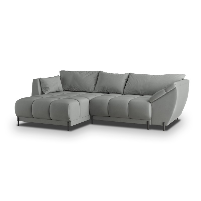 Masseno Narożnik VESTANO z funkcją spania i pojemnikiem na pościel Narozniki L, Rozkładana sofa - Szary, MATT VELVET 85