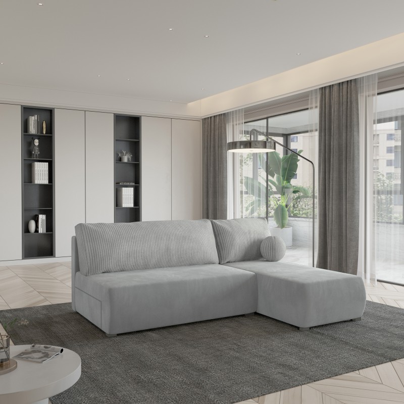 Masseno Narożnik PARVELO z funkcją spania i pojemnikiem na pościel Narozniki L, Rozkładana sofa - Jasnoszary, POSO 55 + PAROS 05