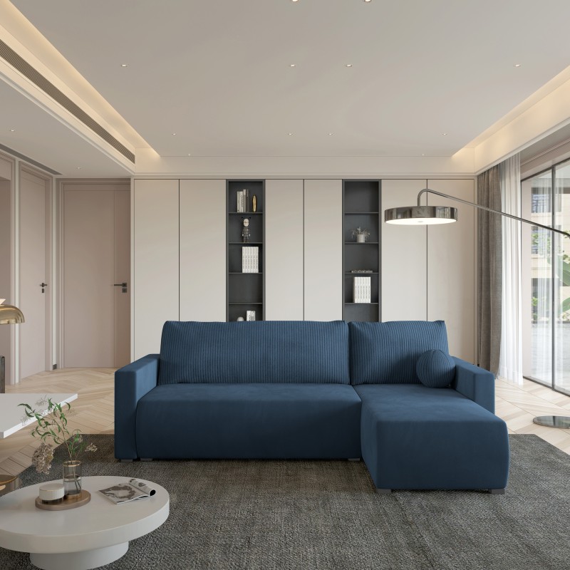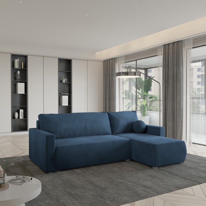 Masseno Narożnik SORGE z funkcją spania i pojemnikiem na pościel Narozniki L, Rozkładana sofa - Niebieski, POSO 05 + KRONOS 05