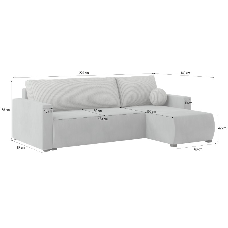 Narożnik występuje w uniwersalnym wariancie, oznacza to, że podczas składania wybierasz, czy ma być lewostronnym, czy prawostronnym. Pozwala to na dopasowanie go do układu Twojego wnętrza. Dzięki temu możesz stworzyć funkcjonalną i ergonomiczną przestrzeń wypoczynkową bez kompromisów.