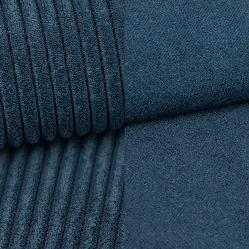 Świetne połączenie trwałych tkanin. Sztruks POSO nadaje teksturę i przytulność, a gładka tkanina Kronos dodaje elegancji i głębi kolorystycznej. To duet, który tworzy nowoczesny, ale ponadczasowy efekt wizualny.