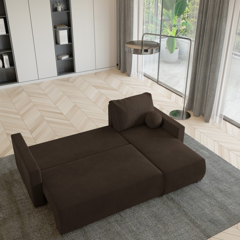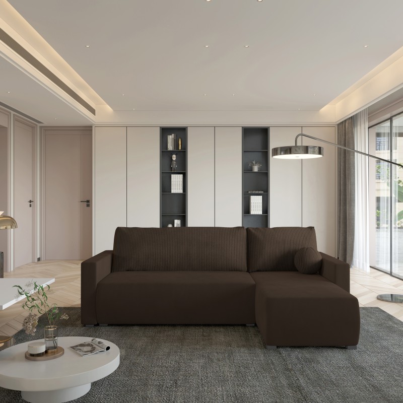 Masseno Narożnik SORGE z funkcją spania i pojemnikiem na pościel Narozniki L, Rozkładana sofa - Brązowy, POSO 06 + KRONOS 06
