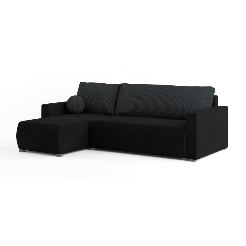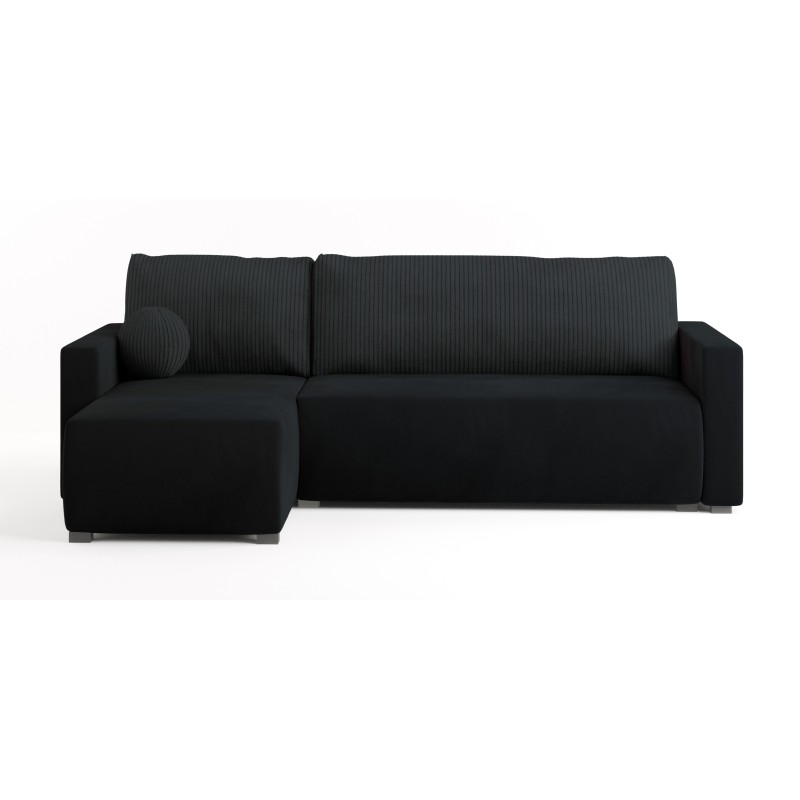 Masseno Narożnik SORGE z funkcją spania i pojemnikiem na pościel Narozniki L, Rozkładana sofa - Czarny, POSO 135 + KRONOS 07