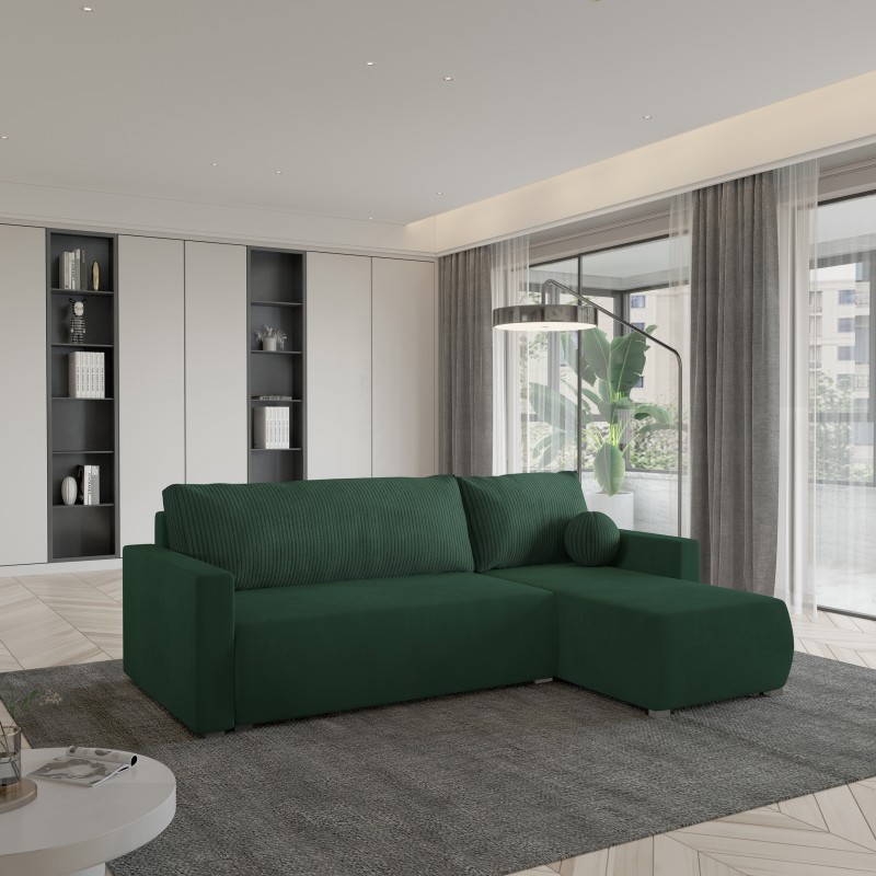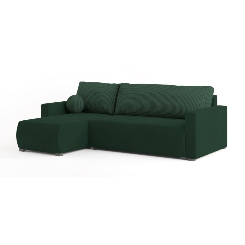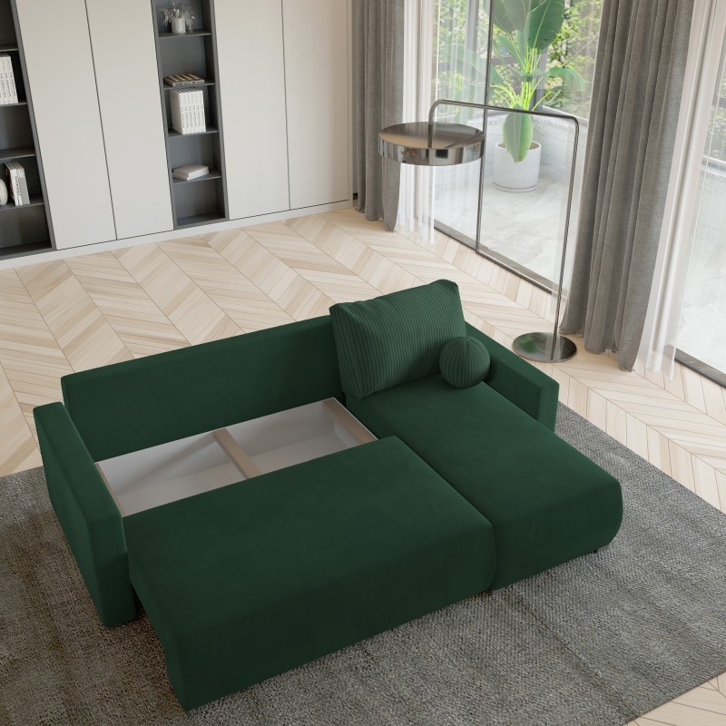 Masseno Narożnik SORGE z funkcją spania i pojemnikiem na pościel Narozniki L, Rozkładana sofa - Butelkowa zieleń