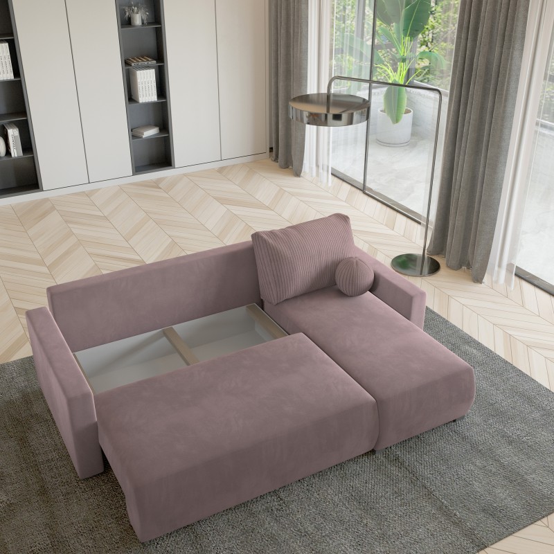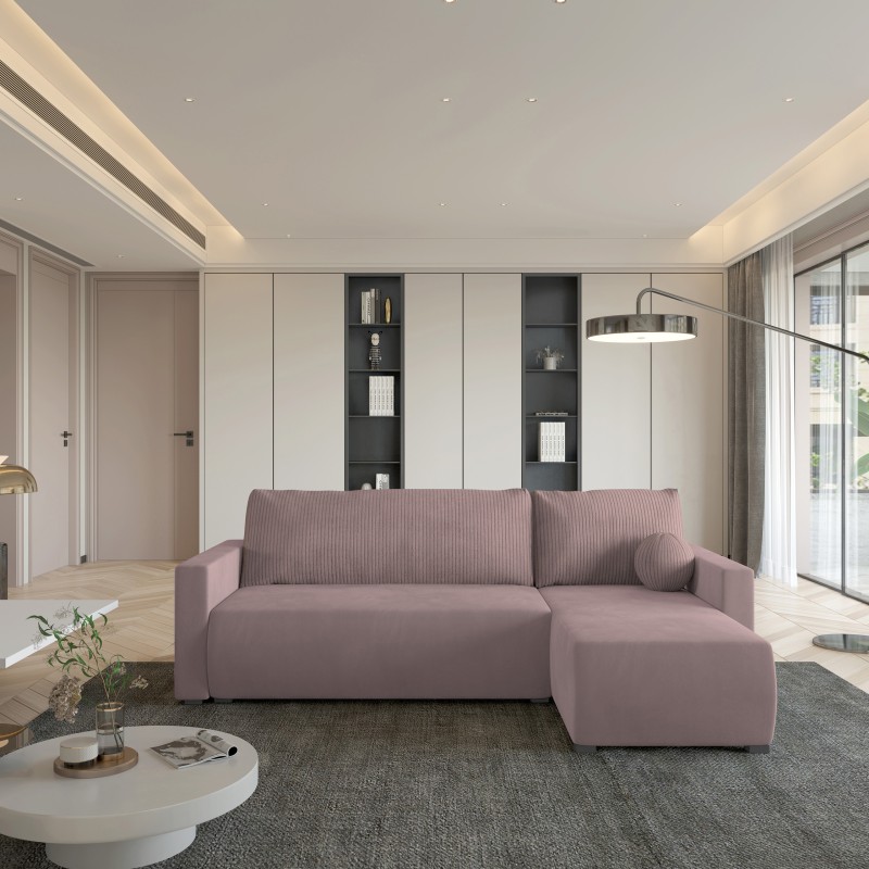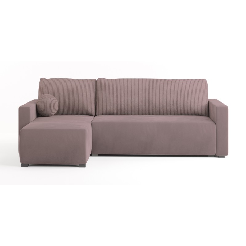 Masseno Narożnik SORGE z funkcją spania i pojemnikiem na pościel Narozniki L, Rozkładana sofa - Pudrowy róż, POSO 27 + KRONOS 27