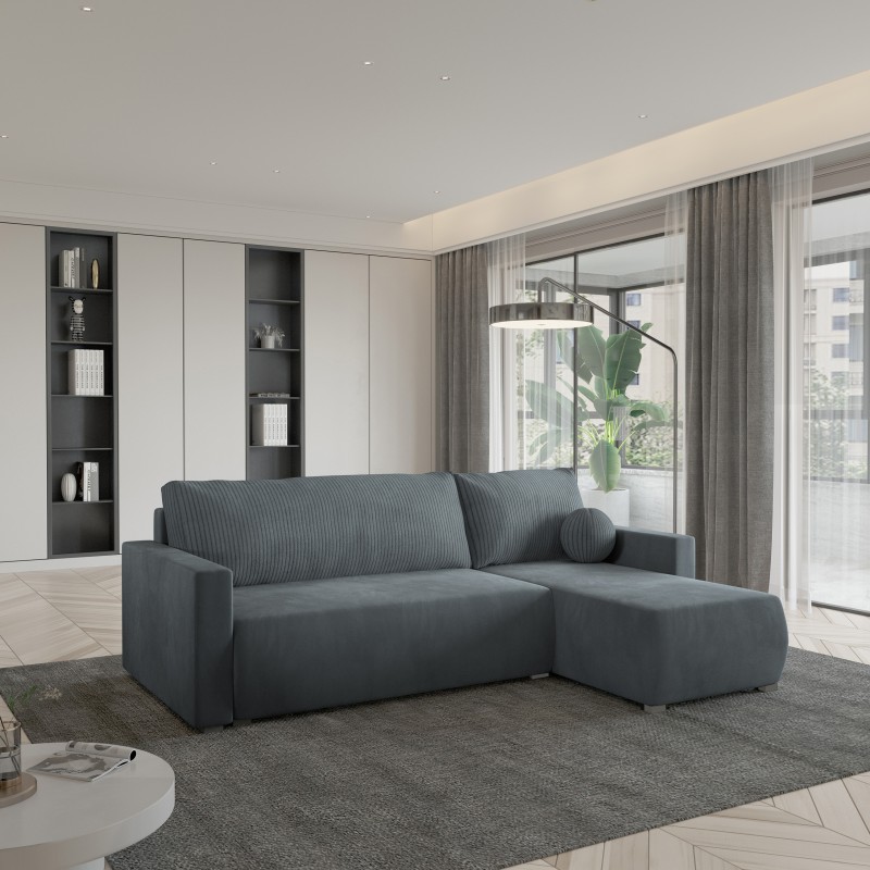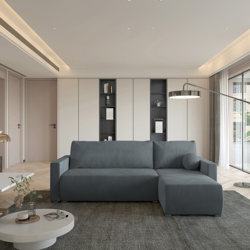 Masseno Narożnik SORGE z funkcją spania i pojemnikiem na pościel Narozniki L, Rozkładana sofa - Szary, POSO 60 + PAROS 06