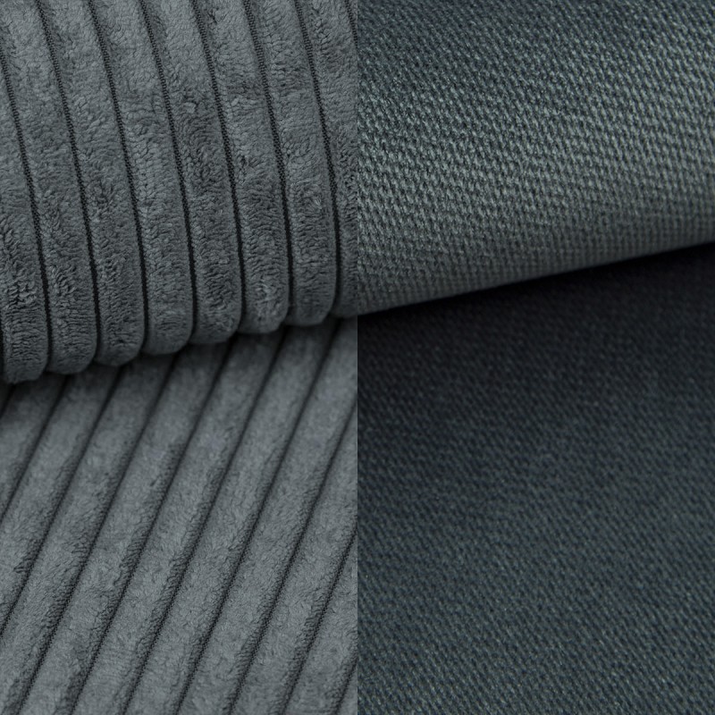 Świetne połączenie trwałych tkanin. Sztruks POSO nadaje teksturę i przytulność, a gładka tkanina Kronos dodaje elegancji i głębi kolorystycznej. To duet, który tworzy nowoczesny, ale ponadczasowy efekt wizualny.
