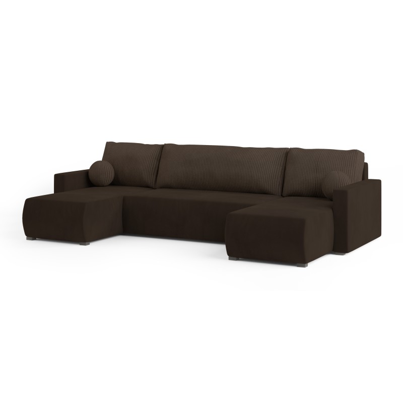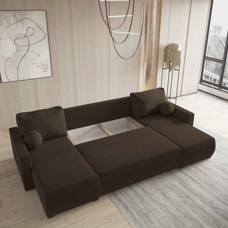 Masseno Narożnik TESSUN z funkcją spania i pojemnikiem na pościel Narozniki U, Rozkładana sofa - Brązowy, POSO 06 + KRONOS 06