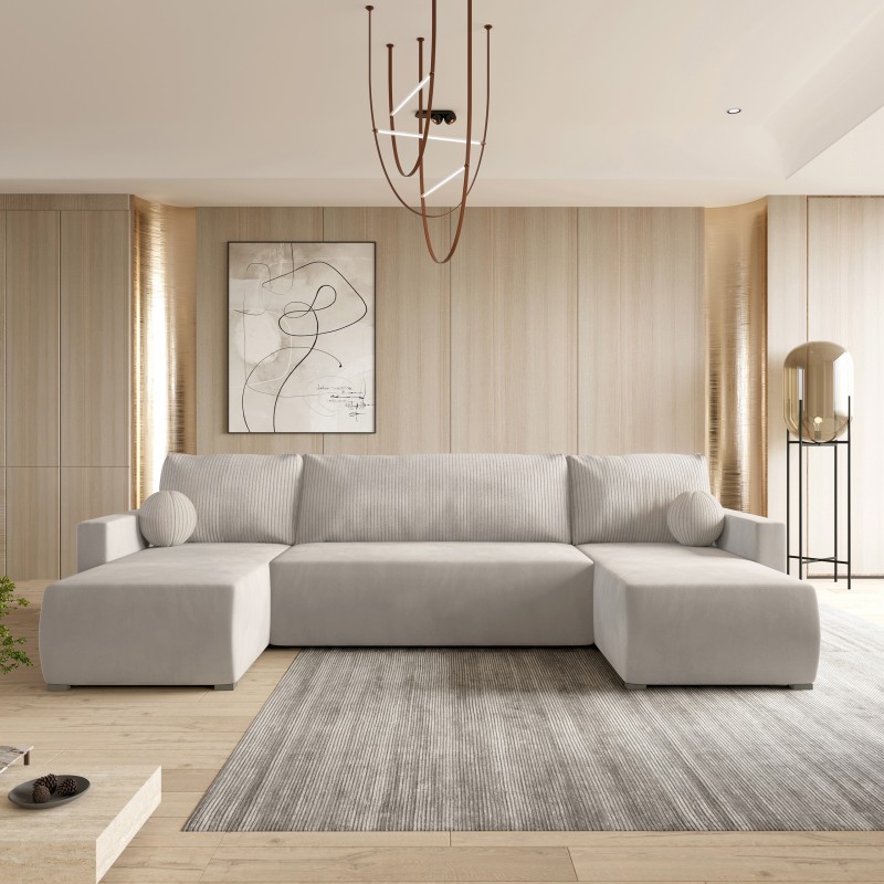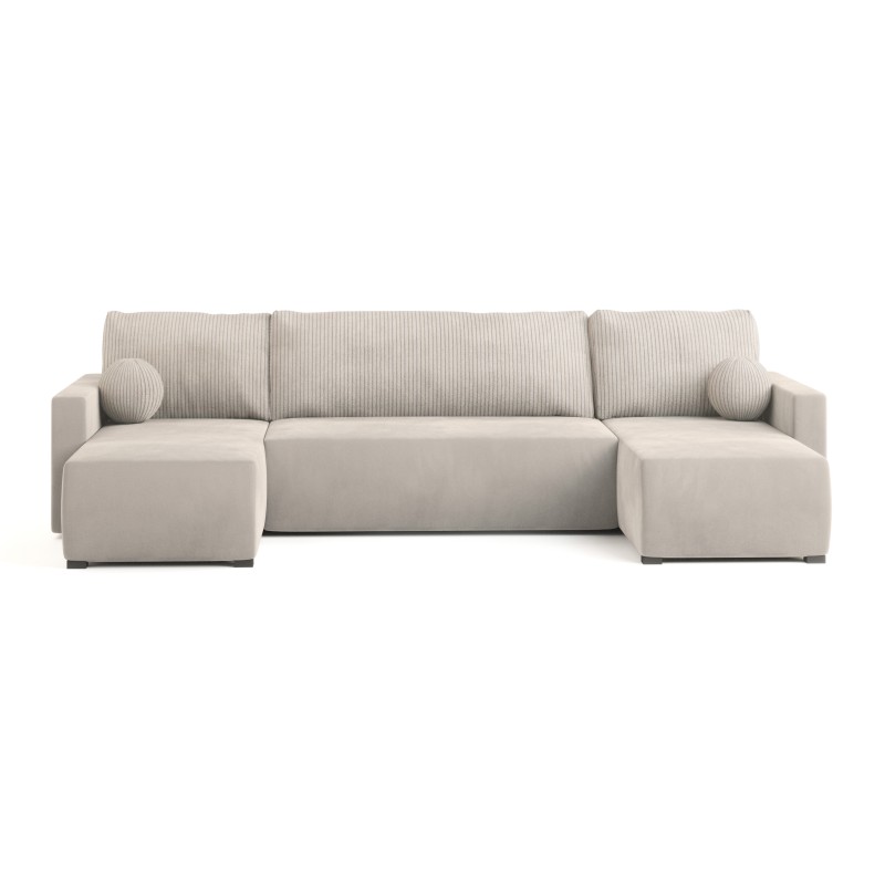Masseno Narożnik TESSUN z funkcją spania i pojemnikiem na pościel Narozniki U, Rozkładana sofa - Kremowy, POSO 100 + PAROS 01