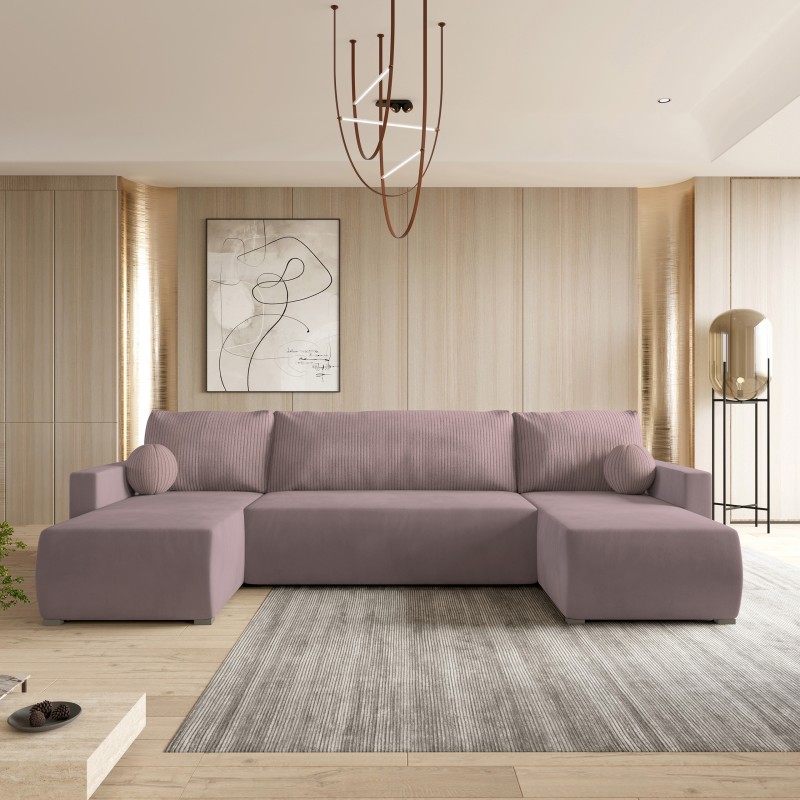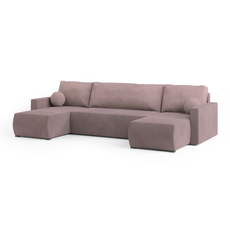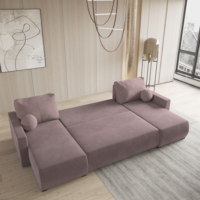 Masseno Narożnik TESSUN z funkcją spania i pojemnikiem na pościel Narozniki U, Rozkładana sofa - Pudrowy róż