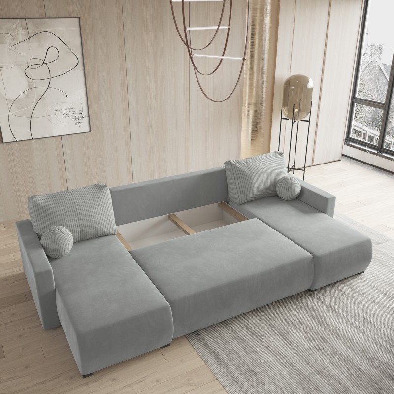 Masseno Narożnik TESSUN z funkcją spania i pojemnikiem na pościel Narozniki U, Rozkładana sofa - Jasnoszary, POSO 55 + PAROS 05