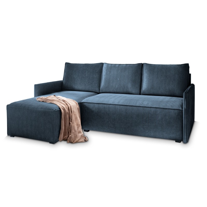 Masseno Narożnik PERUSI z funkcją spania i pojemnikiem na pościel Narozniki L, Rozkładana sofa - Niebieski, POSO 05