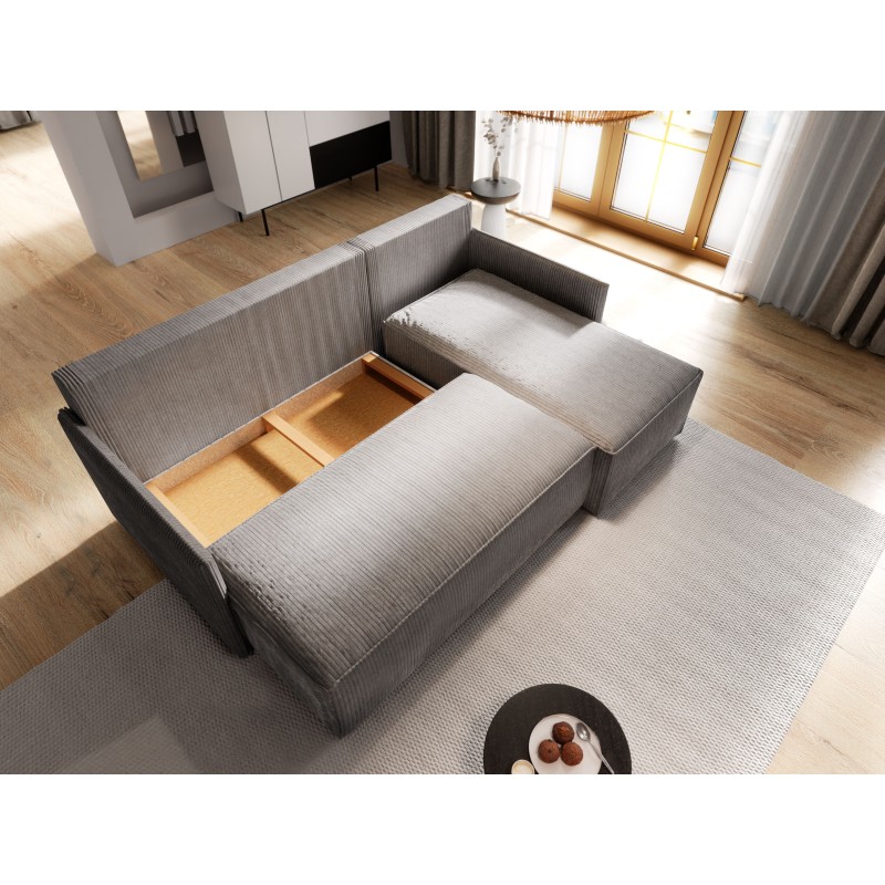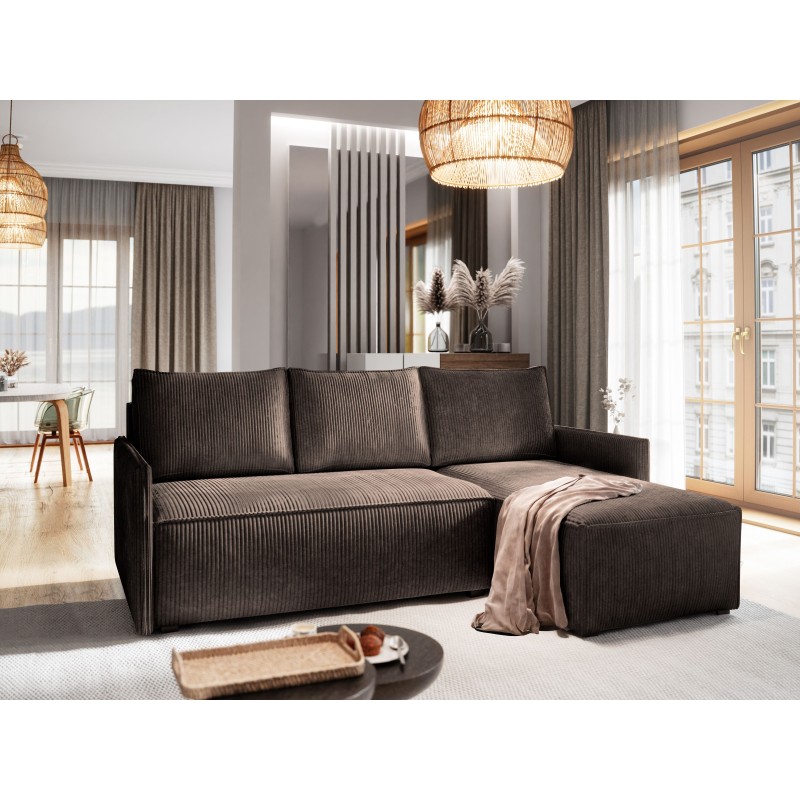 Masseno Narożnik PERUSI z funkcją spania i pojemnikiem na pościel Narozniki L, Rozkładana sofa - Brązowy, POSO 06