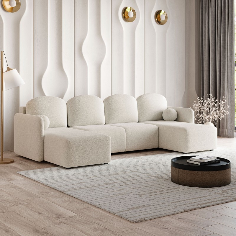 Są takie meble, które nie tylko zdobią wnętrze, ale współtworzą codzienne momenty. NUBERO to właśnie taki narożnik – duży, nowoczesny i przemyślany w każdym detalu. Jego kształt litery „U” sprawia, że staje się naturalnym centrum salonu: tu zaczynają się rozmowy, toczą się rodzinne gry, a wieczorami zamienia się w komfortowe miejsce do wypoczynku.