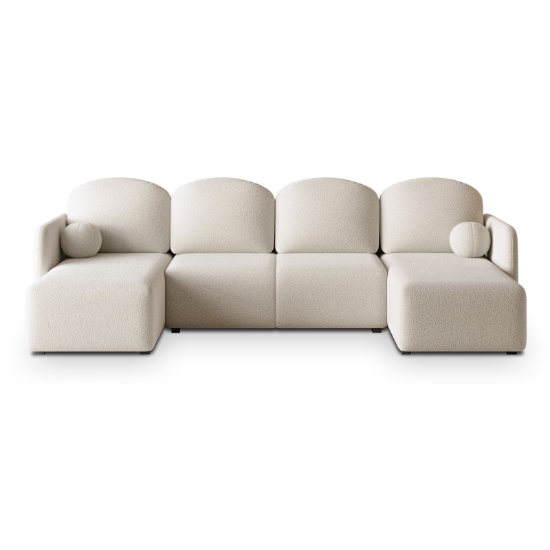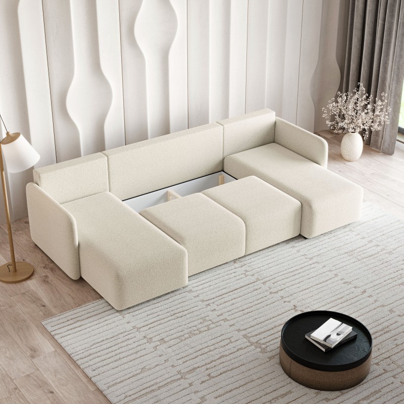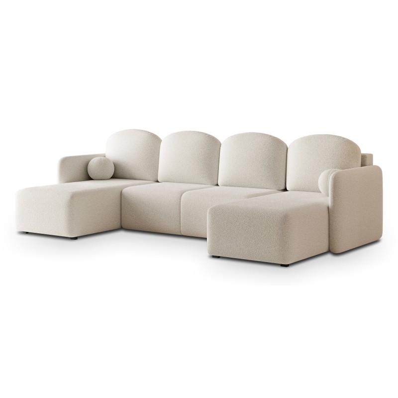 Masseno Narożnik NUBERO z funkcją spania i pojemnikiem na pościel Narozniki U, Rozkładana sofa - Kremowy, QUELLE 02